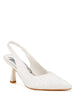 Material: Satin | Sole: Rubber | Closure: Slingback | Heel Height: 3 inches | Style: Bridal | Embellishment: Pearl