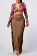 Turn heads with this stunning floral print two piece set featuring a stylish crop top and tassel skirt - perfect for women who love feminine, trendy fashion.