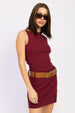 Make a bold statement with this chic boat neck mini tank dress featuring a striking chunky belt detail. Crafted in a premium rayon-nylon-spandex blend with a flattering sleeveless silhouette, this versatile dress combines contemporary style with comfortable stretch for creating unforgettable looks from day to night.