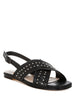 Genuine Leather Studded Flats Ankle Strap - Square Toe Shoes
