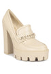These versatile platform loafers bring contemporary edge to any ensemble. Pair them with tailored trousers and blazers for powerful office style, midi skirts and turtlenecks for sophisticated fall looks, or dark denim and leather jackets for edgy weekend wear. The chunky chain detail adds statement-making appeal while the platform heel provides dramatic height with superior stability.