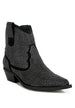 Rhinestone cowboy boots for women featuring dazzling rhinestone embellishments and scallop cut detail. Glamorous western ankle boots with low block heel and pull tabs - perfect for parties, nights out, and dancing the night away.