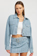 A denim jacket is a wardrobe essential that never goes out of style. This cropped version offers a fresh, feminine take on the classic design, making it perfect for creating effortlessly chic looks year-round. The premium cotton construction ensures this piece will become a beloved staple in your closet for seasons to come. Whether you're dressing up or keeping it casual, this versatile jacket adds instant polish to any outfit.