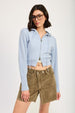 Model wears size Small. Model's height: 5'9". Cropped length hits at the natural waist for a flattering, contemporary silhouette. The relaxed fit provides comfortable layering without restricting movement.