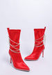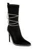 Embrace glamorous sophistication with these stunning satin calf boots featuring an alluring rhinestone-embellished strap that wraps elegantly around the boot. Designed for the woman who loves luxurious details, these boots combine lustrous satin fabric with sparkling rhinestone accents for a look that's both chic and eye-catching.