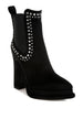 Make a bold statement with these edgy studded Chelsea boots featuring dramatic flared block heels and double stack platform detail. Designed for the fashion-forward woman who loves to stand out, these boots combine rustic charm with contemporary edge for a look that's uniquely striking.