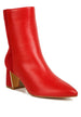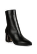 Dual texture ankle boots for women featuring faux leather and faux suede with metallic accent flared heel. Stylish high ankle boots with pointed toe and cushioned insoles - perfect for fall, winter, and adding texture to any outfit.