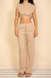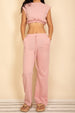 Elastic hem crop top and wide leg pants set for women featuring a cropped top with elastic hem detail and high-waisted wide leg pants with drawstring waist. Comfortable two-piece outfit in solid colors perfect for casual wear and everyday style.
