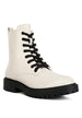Bring out your inner rockstar with these versatile faux leather lace-up boots, designed to deliver edgy style with all-day comfort. Featuring distinctive mock stitch detailing and a rugged lug sole, these boots combine combat-inspired aesthetics with practical functionality.