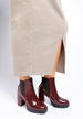 Croc texture Chelsea boots for women featuring chunky block heel and elastic gussets. Stylish slip-on ankle boots with rounded toe and cushioned insole - perfect for fall, winter, and adding texture to any outfit.