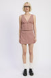Model wears size Small. Model's height: 5'9". Mini length provides flirty coverage. Wrap design allows for adjustable fit at the waist. Comfortable cotton fabric with natural breathability.