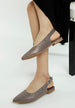Step into chic glamour with these glitter slingback flat sandals, featuring a sparkling faux leather upper and sophisticated pointed toe that creates a trendy, eye-catching silhouette. The rhinestone-embellished pin buckle fastening adds luxe detail while the comfortable cushioned insoles and flat heel ensure a relaxed, walkable experience perfect for all-day wear.