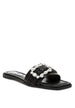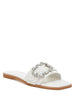 Step into glamorous comfort with these diamante-embellished flat sandals, featuring an eye-catching brooch detail and elegant woven strap design. The sophisticated square toe silhouette and sparkling diamante embellishments create the perfect combination of contemporary style and effortless wearability for summer evenings and special occasions.