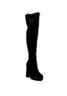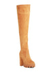 Faux suede knee-high boots for women featuring block heel and lug sole platform. Long boots with side zipper and elasticated gussets for perfect fit - ideal for fall, winter, and staying warm in style.