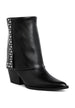 Women's Studded Foldover Boots - Pointed Toe Block Heel 2.5 Inch