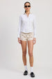 Model wears size Small. Model's height: 5'9". Mini length for a contemporary, flirty look. The low-waisted design creates a relaxed, modern silhouette. Full lining ensures comfortable coverage and a flattering fit.
