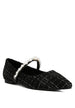 Tweed Mary Jane Flats Pearl Diamante Strap - Pointed Toe Shoes
