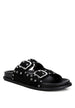 These stunning sandals are a fusion of comfort and glamour for the modern woman. The premium nubuck faux leather upper offers a soft, luxurious feel that's gentle on your feet while being durable enough for daily wear. Adorned with intricate embellishments, these sandals add glamorous sophistication that elevates any outfit—perfect for making every step a statement. The pin buckle fastening offers an adjustable, secure fit that allows you to customize the tightness for optimal comfort. The open round toe provides breathable comfort that's ideal for warm weather, while the flat heel ensures effortless all-day wearability without sacrificing style. These versatile sandals effortlessly transition from day to night, making them perfect for busy women who need footwear that works for multiple occasions. Whether you're enjoying casual outings, attending summer events, or seeking glamorous sandals that deliver both comfort and statement style, these embellished flat sandals offer fashion-forward confidence, exceptional comfort, and day-to-night versatility for the woman who loves to shine.