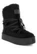 These snow boots are the perfect combination of cozy comfort and uber chic style for winter. The soft faux fur collar detail provides warmth and adds a stylish accent that elevates these boots beyond basic winter footwear. The lace-up fastening retains comfort while allowing you to adjust the fit for optimal support and ankle stability—perfect for navigating winter conditions with confidence. The comfortable cushion insoles provide optimum grip and support during extended wear, ensuring your feet stay comfortable throughout winter adventures. The platform lug soles add 1.5-inch height for an edgy flair that elongates your legs while delivering superior traction on snowy and icy surfaces. The premium microfiber construction offers durable protection against winter elements. Team these boots with your winter ensembles for an uber chic look—whether you're running errands, enjoying snowy outings, or seeking cozy footwear that delivers both warmth and edgy style, these faux fur lace-up snow boots offer the perfect winter solution for snuggling up in style.