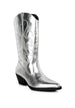 Embrace bold western style with these stunning embroidered cowboy boots. Featuring intricate embroidery work and a comfortable block heel, these calf-high boots combine authentic cowboy aesthetics with modern comfort for a look that's both striking and wearable.