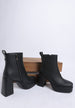 Make a bold statement with these premium faux leather boots featuring a striking square toe. The block heel adds to the elevation while the zipper closure makes them a functional choice. Style these boots with your pleated skirts or midi dresses for a chic look.