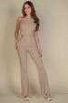Women's Ribbed Cropped Top and Bootcut Pants Set - Two Piece Outfit
