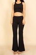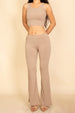Ribbed sleeveless crop top and flared pants set for women featuring a fitted crop top and high-waisted flared pants. Comfortable two-piece outfit in solid colors perfect for casual wear, lounging, and everyday style.