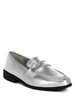Women's Metallic Faux Leather Penny Loafers Low Block Heel