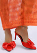 Embrace feminine elegance with these charming big bow satin mules. Featuring an oversized bow detail and luxurious satin finish, these pointed-toe stilettos combine romantic style with modern sophistication for effortless glamour.