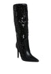Command attention with these stunning sequin-embellished stiletto long boots that bring instant glamour to any outfit. Designed for the woman who loves to make a statement, these boots feature dazzling sequin details paired with sleek faux leather for a show-stopping look that turns heads.