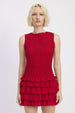 Model wears size Small. Model's height: 5'9". Mini length provides flirty coverage. Smocked bodice offers stretchy, comfortable fit that adapts to your body. Sleeveless design with ruffle accents.