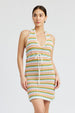 Striped Crochet Mini Dress with Halter Neck - Women's Open Back Dress