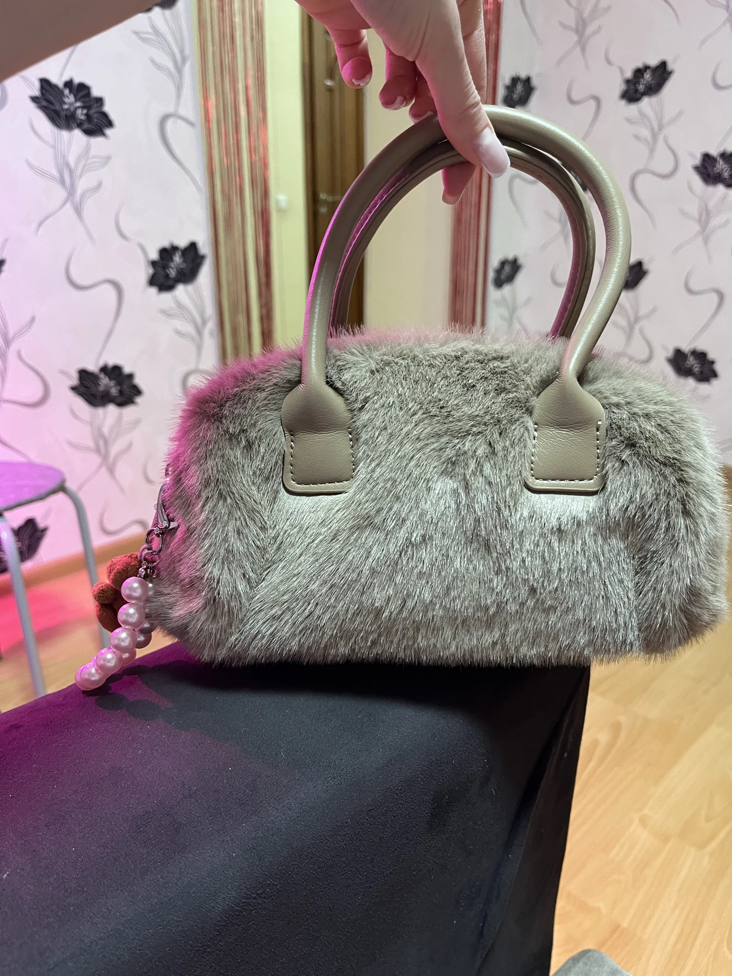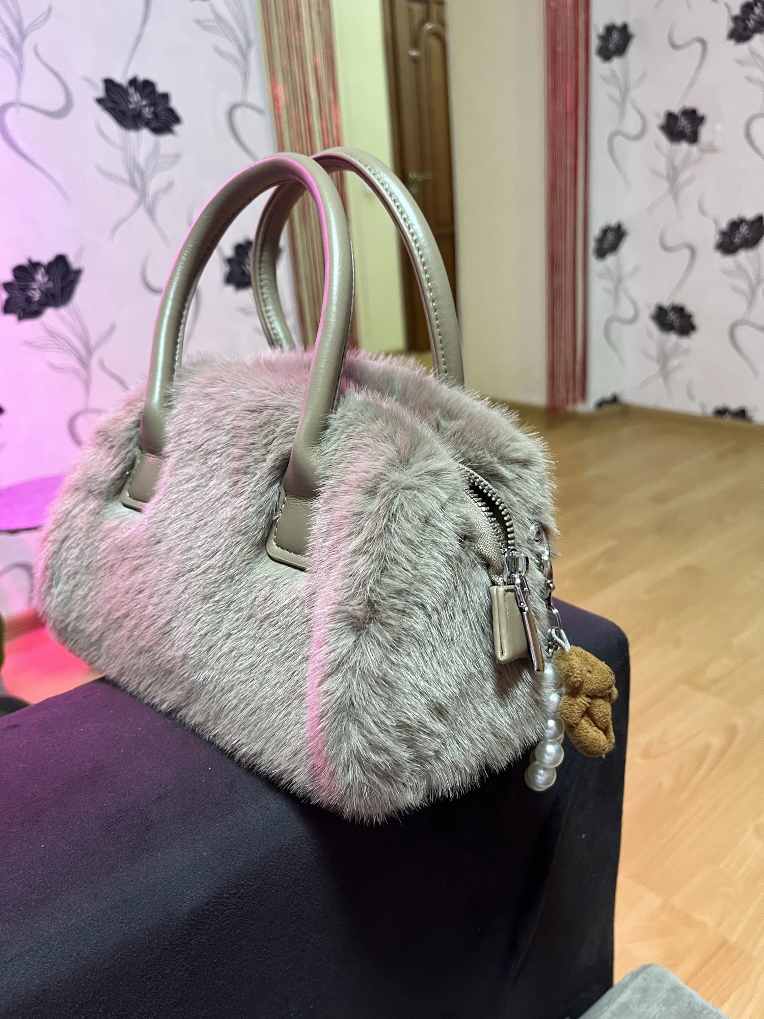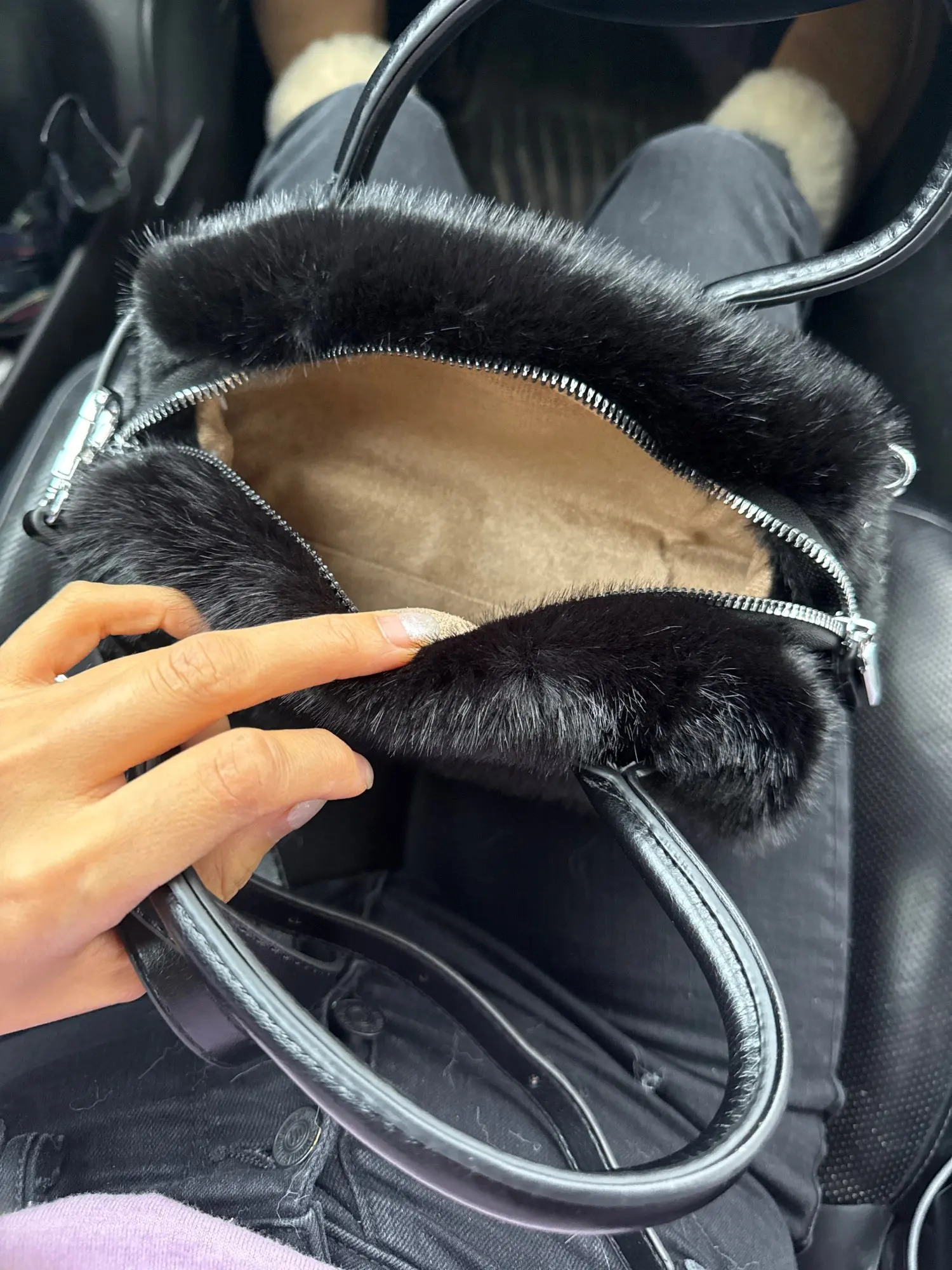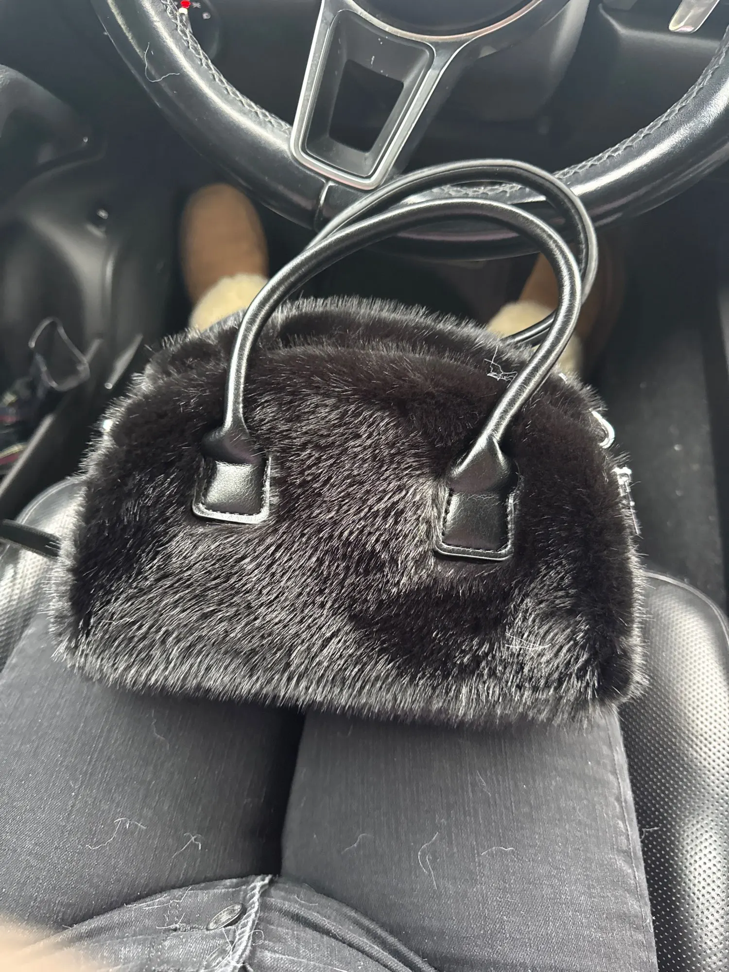 This vintage tote bag pairs beautifully with tailored coats, cashmere sweaters, and minimalist dresses. Perfect for autumn and winter wardrobes, the faux fur accent adds texture and warmth to neutral palettes. Carry it to brunch, business meetings, or weekend shopping trips for an effortlessly chic look.